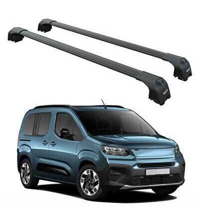 Citroen Berlingo Uzun Şase 2018-2025 Alüminyum Tavan Rayları, Plus Serisi – Siyah