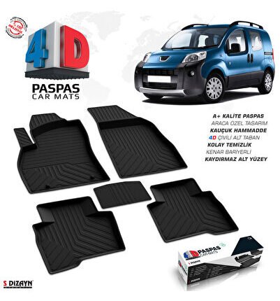 S-Dizayn Peugeot Bipper 4D Havuzlu Paspas Siyah 2007-2017 A+Kalite 4DS-82187