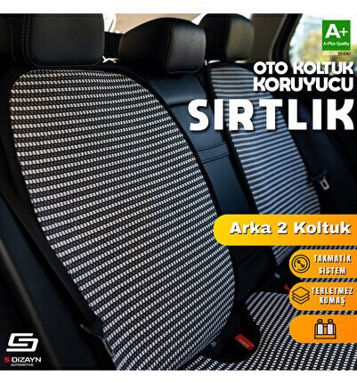 Oto Arka Koltuk Sırt Koruyucu Kılıf Çizgili Füme Beyaz Universal 2 Parça A+ Kalite TOK-AKS-CFB