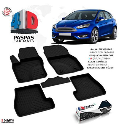 S-Dizayn Ford Focus 3 Makyajlı HB 4D Havuzlu Paspas 2015-2018 A+Kalite 4DS-87143-A