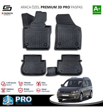 S-Dizayn VW Caddy 3D Pro Havuzlu Paspas 2010-2015 A+ Kalite