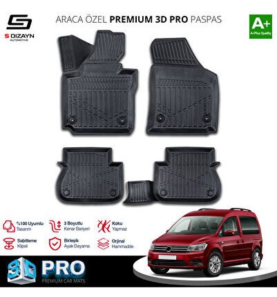 S-Dizayn VW Caddy 3D Pro Havuzlu Paspas 2015-2020 A+ Kalite