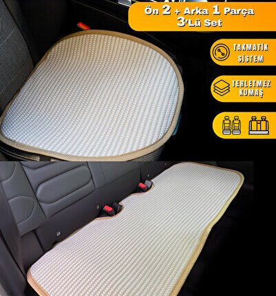 S-Dizayn Oto Koltuk Koruyucu Alt Minder Krem Universal 2+1 Parça Ön Arka A+ Kalite TOK-OTM-KR-3