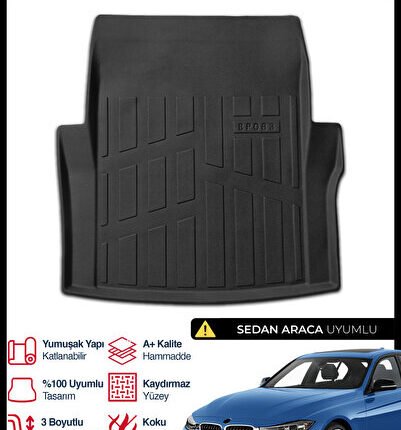 S-Dizayn Bmw 3 Serisi F30 Sedan 3D Pro Bagaj Havuzu 2012-2019 A+ Kalite 3BH-SDZ184