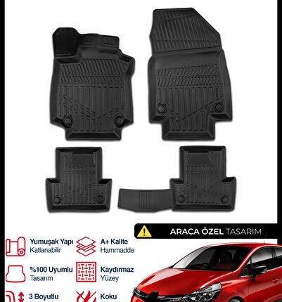 S-Dizayn Renault Clio 4 3D Pro Havuzlu Paspas 2012-2019 A+ Kalite 3DS-SDZ199