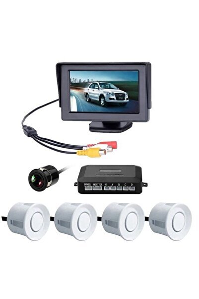 AEM Araç geri park sensörü monitör ve kameralı ses ikazlı beyaz göz