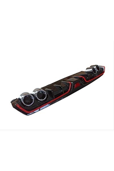 CIVIC FC5 2016-2020 IÇIN UYUMLU DIFUZOR 4 EGZOZ PIANO BLACK KIRMIZI SERITLI