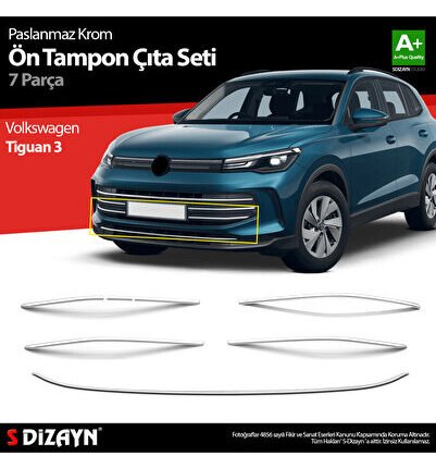 S-Dizayn VW Tiguan 3 Krom Ön Tampon Çıta Seti 7 Prç. 2024 Üzeri A+ Kalite 7655190