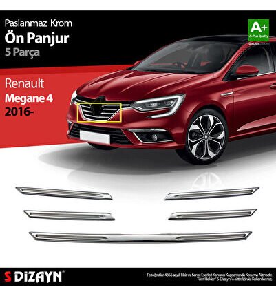 S-Dizayn Renault Megane 4 Krom Ön Panjur 5 Prç. 2016-2020 A+ Kalite 7033180