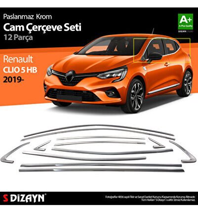 S-Dizayn Renault Clio 5 Krom Cam Çerçevesi 12 Prç. 2019 Üzeri A+ Kalite 7027070
