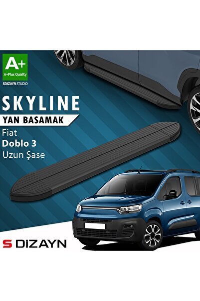 S-Dizayn Fiat Doblo 3 Uzun Şase Skyline Siyah Yan Basamak 213 Cm 2023 Üzeri A+ Kalite