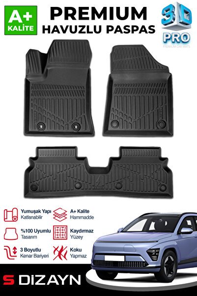 S-Dizayn Hyundai Kona Elektrikli 3D Pro Havuzlu Paspas 2024 Üzeri A+ Kalite