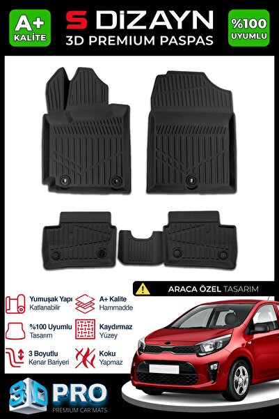 S-Dizayn Kia Picanto 3D Pro Havuzlu Paspas 2017 Üzeri A+ Kalite 3DS-SDZ182
