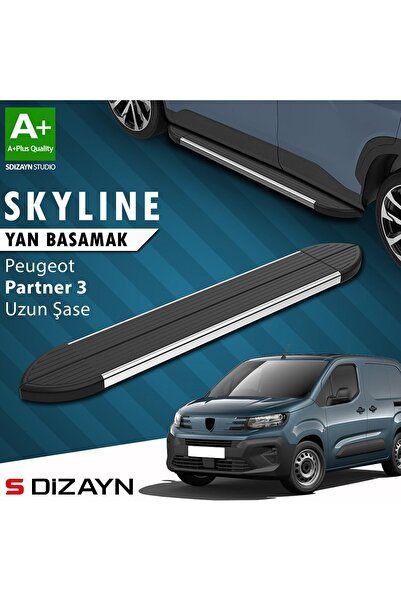 S-Dizayn Peugeot Partner 3 Uzun Şase Skyline Krom Yan Basamak 213 Cm 2018 Üzeri A+ Kalite