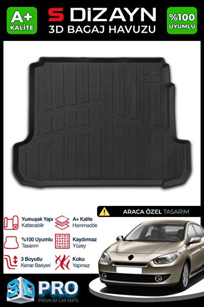 S-Dizayn Renault Fluence 3D Pro Bagaj Havuzu 2009 Üzeri A+ Kalite 3BH-SDZ111