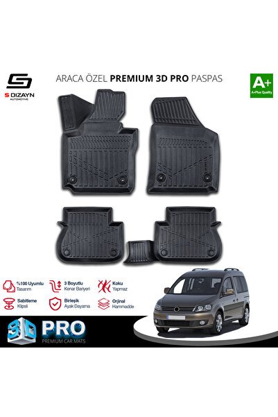 S-Dizayn VW Caddy 3D Pro Havuzlu Paspas 2010-2015 A+ Kalite