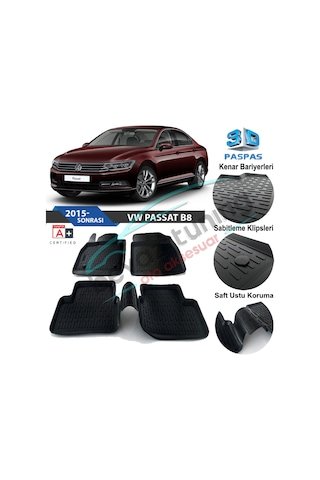 Volkswagen Passat B8 Havuzlu 3D Paspas Niken Siyah 2015 Sonrası